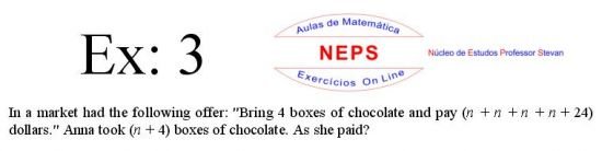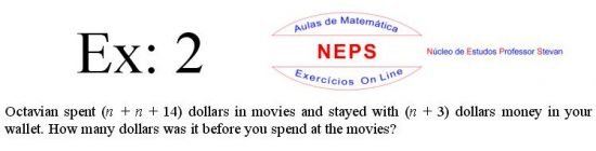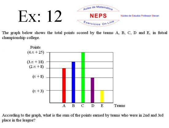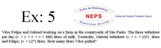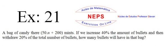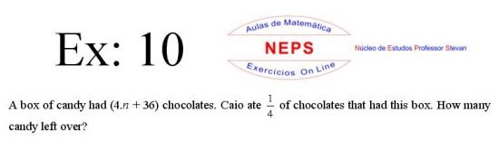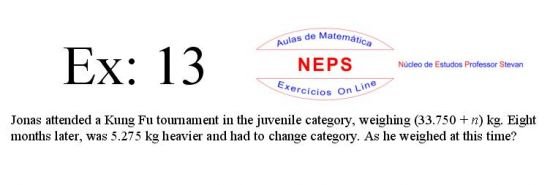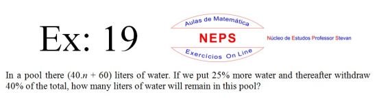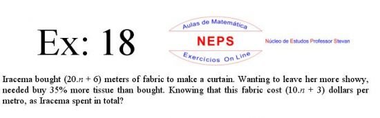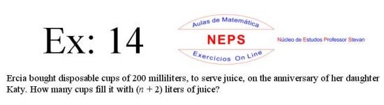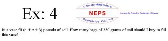 The Intellectconnective Method ©, created by NEPS, is part of a revolutionary new system of teaching/learning, allowing you to test your knowledge. When selecting an exercises, the statement will appear two windows: one requesting “Call Number” and another “Answer: (Using at least four decimal places when possible)”. You can use your call number on high school studying, or enter a number you want to use, allowing the use of the same statement several times in getting different answers from each other, testing well in many ways their learning. Then you must click "Submit" to that site instantly make the correction, telling you if the answer entered is correct, incorrect, or "half right". It is IMPORTANT to note that in solving the exercise, the letter "n" in the wording shoul be replaced by the number chosen. STUDIES GOOD!